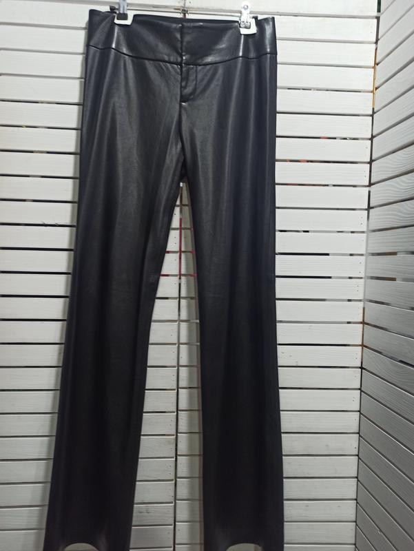 Кожзам, выглядит как натуральный кожа. Верхняя часть в обтяжку,садятся идеально. Низ слегка расклешенный. Американский бренд.