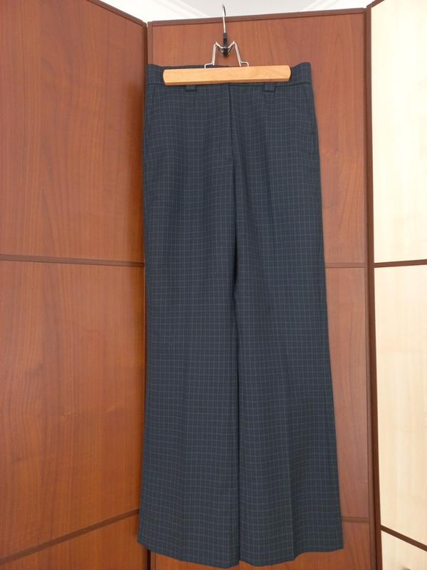 классические брюки в клетку прямого кроя на высокой посадке. Длина по внешнему шву 99 см, длина по внутреннему шву 73 см, край брюк обверложен, но не подогнутый. ПОТ 33 см, ПОБ 44 см, ширина штанини по низу 23 см