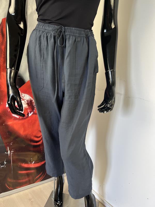 Талія на резинці-44-45 Бедра-60 Посадка перед-34 Крок-66 Довжина-95 Ширина штанини верх-36 Ширина низу-20