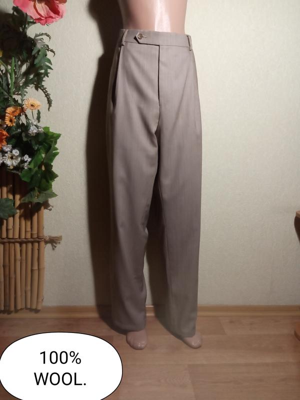 Пот 44, пост 55, высота центрального шва 31/43, посадка высокая, полуширина вверху брючины 36, внизу 23 см. Низ подшит вручную ( фото). Длина по боку 108 см. Два боковых кармана и два сзади под пуговицами. Застегивается на мужскую сторону. Выстираны. Шерсть плотная, но тонкая. На последнем фото небольшая помарка. ДИВЕТСЯ ПРИМЕНЕНИЕ ИНШИ МОЮ ОВНИТЕЛЬНЫЕ ПРОПИЦИИ!
