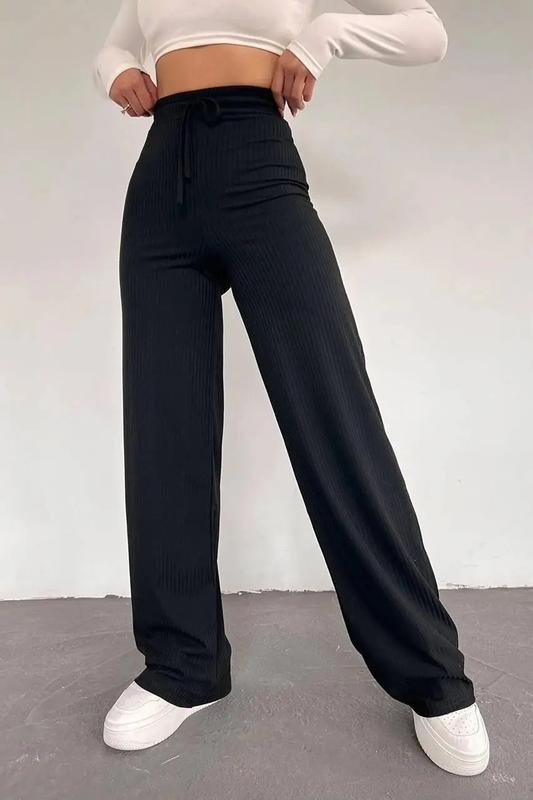 Дуже стильні чорні базові штани в рубчик, дуже круті вживу, висока посадка, з переду можна носити як звичайні, або затягувати та більше відкривати талію, та навколо талії можна завʼязувати як хочеться, стрейчеві, підійдуть на розмір 44-46, стан ідеальний, без дефектів, вільного крою, всі бірки на фото Фото на собі не роблю