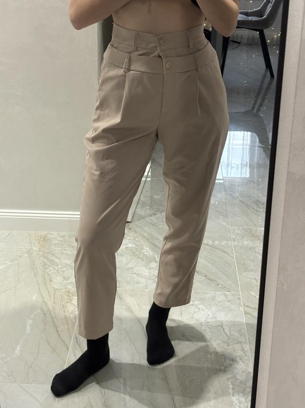 Шикарні класичні брюки з акцентним подвійним поясном в ідеальному стані українського бренду the lace Розмір М, я носила на параметри стегна 103, талія 68 (через що перешитий верхній гудзик - на фото видно, за бажанням можна перешити як зручніше)