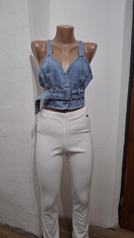Белые брюки типа лосин. Высокая посадка, типа рубчик