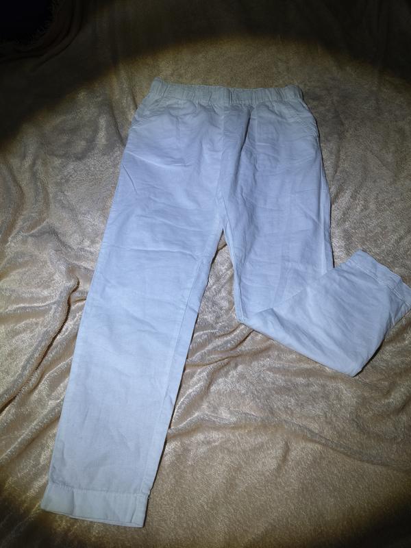Белоснежные новые брюки.Широка резинка, высокая посадка.Глубокие карманы. Дополнительные замеры на фото. ПОТ-43(50),ПОБ-62,ДОЛЖ-103