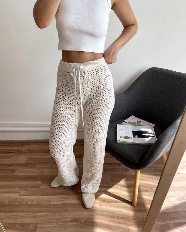 Pull&Bear вʼязані брюки кроше, на високій посадці, матеріал приємний до тіла бавовна стан ідеал ⠀ ціна 790 грн ✔️ ⠀ розмір m заміри: ПОТ 32-52 см довжина 110 см, ПОБ 50 см ⠀ параметри на фото: 167 см, 83-62-91