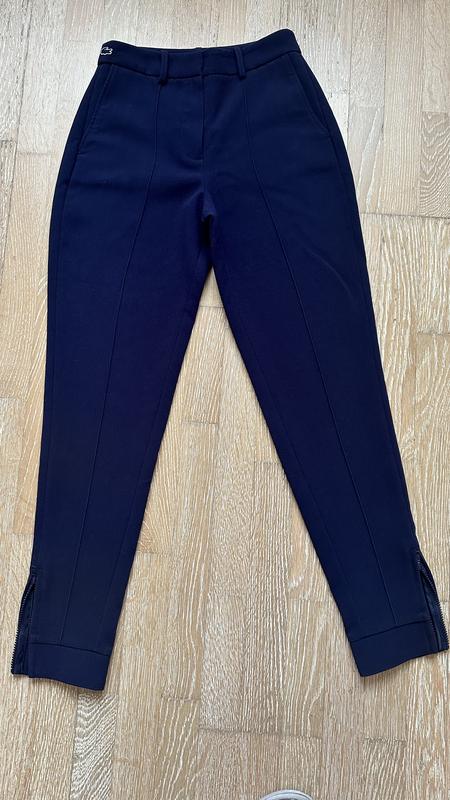 Брюки оригінал Lacoste xs розмір, синій колір, знизу є на блискавці, тканина щільна, гарний стан, модель пряма, не широка, більше слім. Довжина 100, крок 74, пояс 34, бедра 48