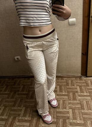 Велюрові штани на резинці, по бірці розмір L, мій розмір М, принт з логотипом бренду