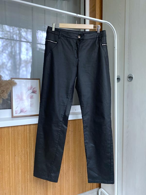 Чорні брючки Bps, р-р 22 Стан нових Тканина пропитка під шкіру ПОТ 55-61, ПОС 60-73, посадка 26, посадка ззаду 42, довжина збоку 105, шагова 79 72% бавовна, 26% поліестр