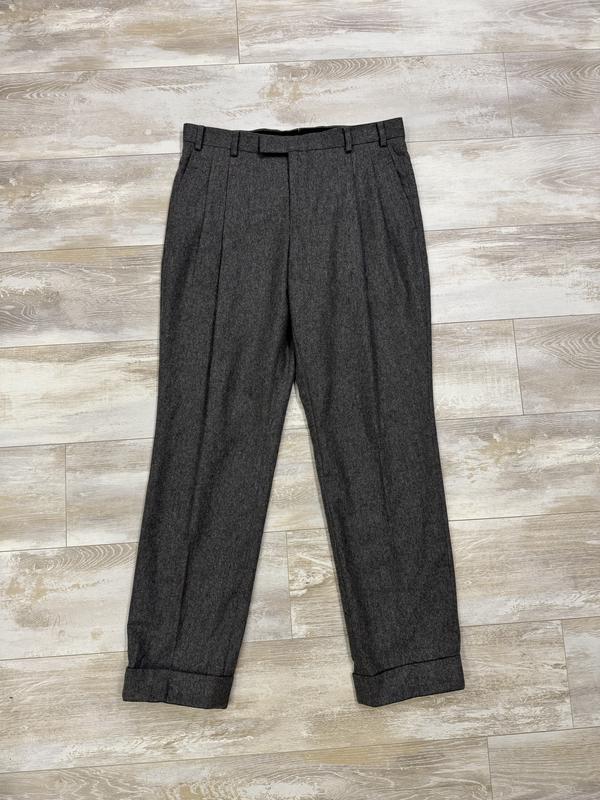 Стильные шерстяные брюки бренда Skabo. Модель унисекс. Размер М-L. Идеальное состояние. Состав: 100% шерсть, есть подкладка. Цвет серый. Длина 105 см, шаговый шов 81,5 см, по поясу 43,5 см, поб 54 см за счет защипов можно и больше, посадка спереди до шва 26 см, по низу 20 см.