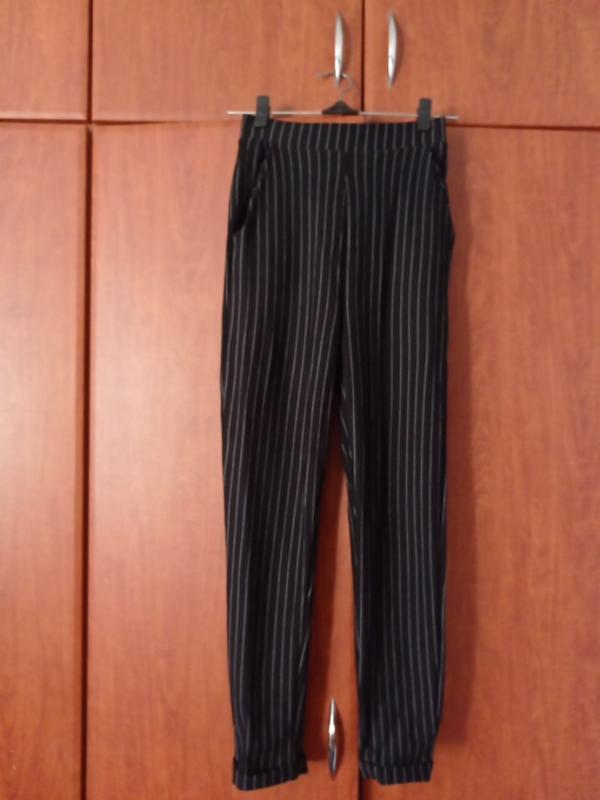 Сток, без бики.Ткань чуточку тянется.Внизу покорены.С карманами по бокам.Высокая посадка.Пот-30.5см,поб-38.5см,шаг-65см,длина-95см