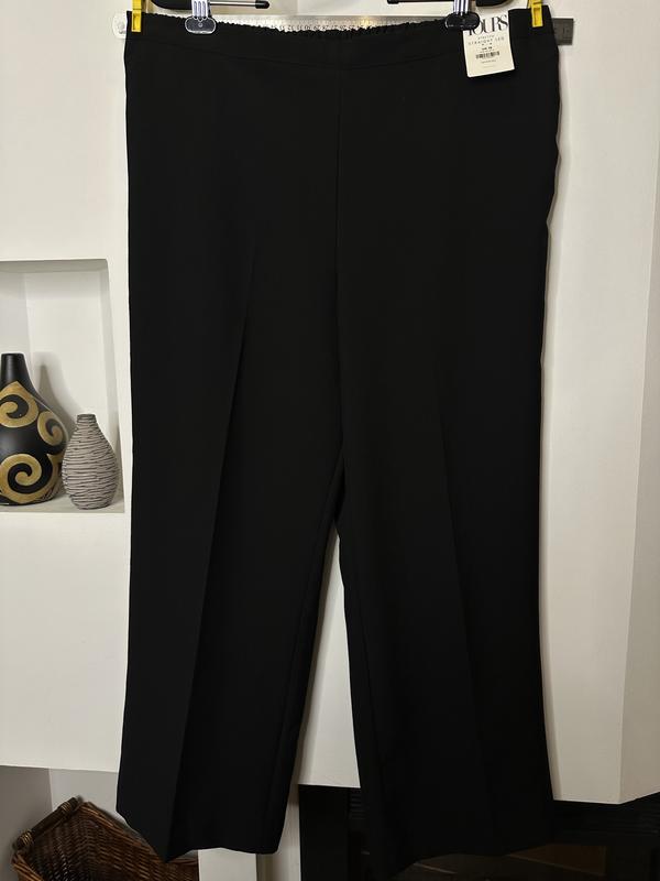 Состояние новые с биркой Известного бренда Чёрного цвета 76% полиэстер 20% вискоза 4% эластан Пояс сзади на широкой резинке Высокая посадка Широкая штанина Смотрятся супер Замеры Пот 48/60 Поб 61/65 Посадка 36/45 Длина 101 Низ 28,5
