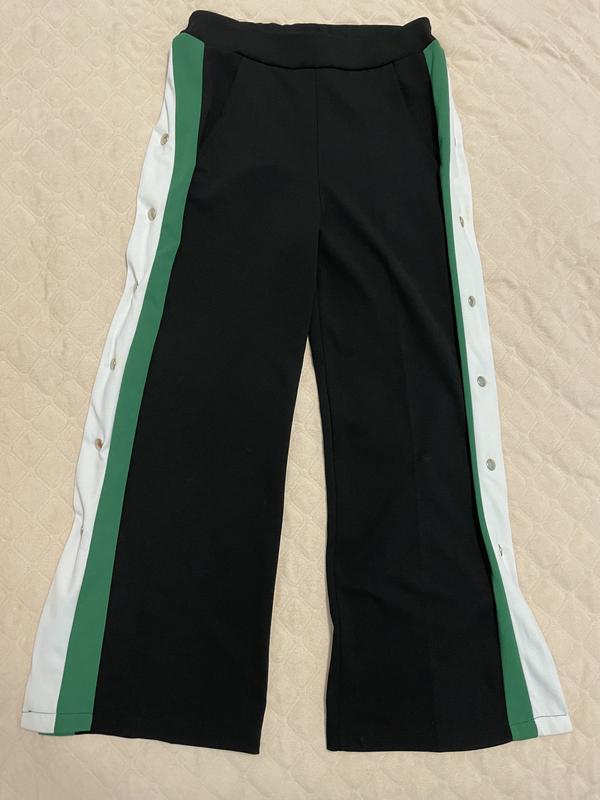брюки з лампасами, стан хороший тільки є дефект через гудзики (на фото вказано). вони можуть бути як і в закритому вигляді так і в відкритому. розмір Xs-S. талія 37(74) тягнеться до 44(88) см, довжина 96 см.