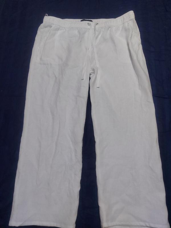 Белые, женские брюки 100% льон ПОТ 48 ПОС 62 Длина 96