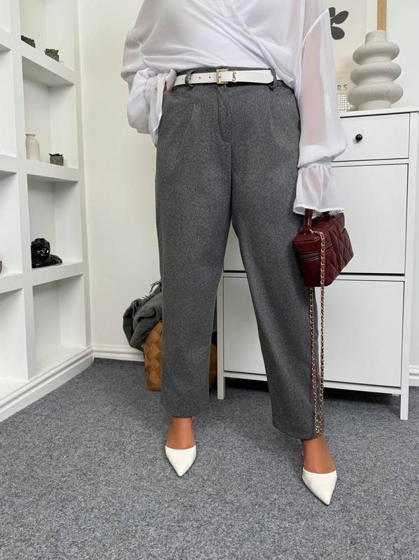 ❄️𝓝𝓮𝔀 𝓬𝓸𝓵𝓵𝓮𝓬𝓽𝓲𝓸𝓷 ❄️ ОТПРАВЛКА ПРОЧОМ 2-5диб 🌸 по ПОЛНИЙ ОПЛАТИ на карту ❗ перед заказом уточняйте наличие и условия 💕 Штани Модель : 0501 Ткань : елка диагональ Размеры: 42-44, 46-48 50-52 Цвет: меланж серый, черный,шоколад с молоком Описание: Брюки на фото подвернуты для стиля, на самом деле имеют обычную длину. Стильные джоггеры свободного кроя из фактурной ткани в узоре "елочка” с диагональным плетением. Удобная посадка на резинке с дополнительной застежкой на пуговицы. Современный силуэт, сочетающий комфорт и универсальность - подойдут как для ежедневных луков, так и для стильных прогулок.