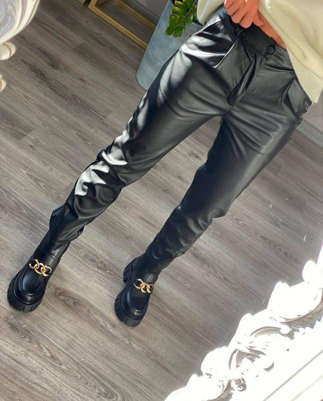 Класичні брюки з матової екошкіри ➡️Мод. 7111 ➡️Розміри: 42-44, 44-46, 46-48 ➡️Тканина: матова екошкіра ➡️Колір: чорний ➡️Довжина виробу 100см Перший розмір ОС до 92см Другий розмір ОС до 99см Третий розмір ОС до 105см За бажанням ремень плюс 40грн ‼️Найкращі ціни, новинки, наявність‼️