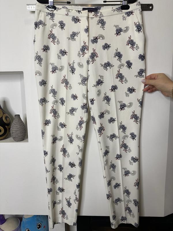 Состояние идеальное Известного бренда Ткань фактурная Мягкая Тянется 66% полиэстер 32% вискоза 2% эластан Два кармана Застёгиваются на молнию, пуговицу и крючок К низу слегка приужены Замеры: ПОТ 44 ПОБ 54/58 Длина 101 Низ 6.5