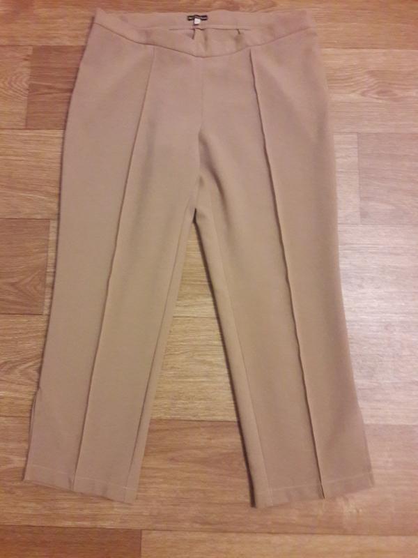Элегантные полушерстянные укороченные штаны - бриджи. Средняя посадка. Длина:по внутреннему шву 61, по внешнему 81. Пояс 43 ПОБ 53. Прострочены стрелки, по бокам разрезы. Пошиты в престижном ателье. Состояние идеальное (одевались один раз).