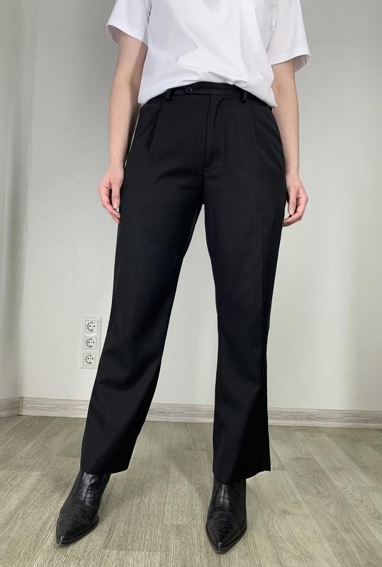 Брюки чорного кольору Довжина 98 см, напівобхват талії 40 см, напівобхват стегон 54 см У складі 36% віскоза, 65% поліестер Стан ідеал