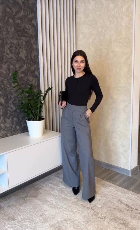 Брюки Палаццо арт. gr. 83158 Цвет: серый меланж Размеры: 42-44; 46-48; 50-52 Ткань: кашемир шерсть (ткань тянется) Брюки Палаццо - в поясе резинка по спинке, имеют карманы Открытка по Новой почте! Полная переплатка, или наложенный платеж с минимальной предоплатой 200.00 грн!!️