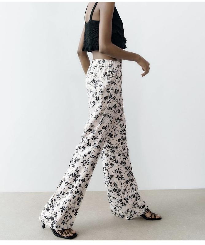 Брюки в квітковий принт, дуже гарна кольорова гама Бера ПО 55 Талія по 34, резиночка тянеться до 46 З боку 2 карманчика