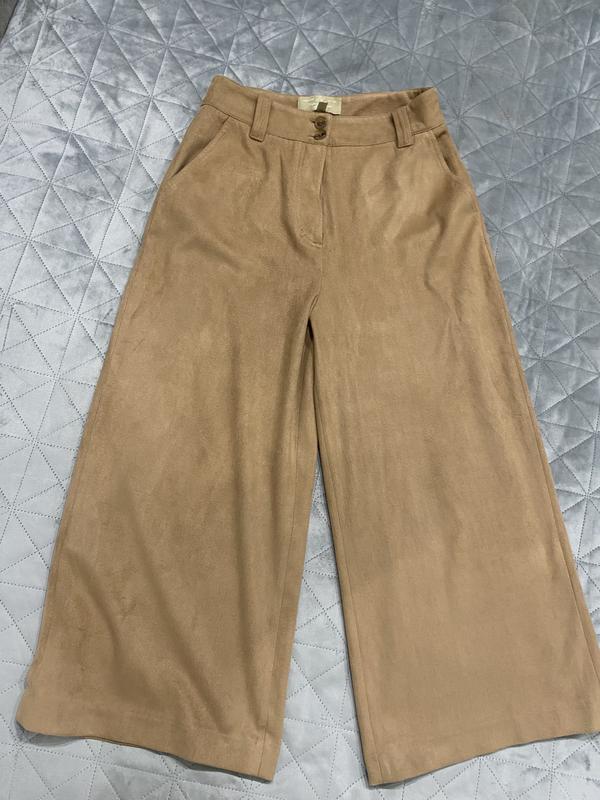 Штани кюлоти в ідеальному стані. Не впевнена чи це натуральний замш, але етикетки немає. Напевно штучний замінник. Дуже приємні на дотик.