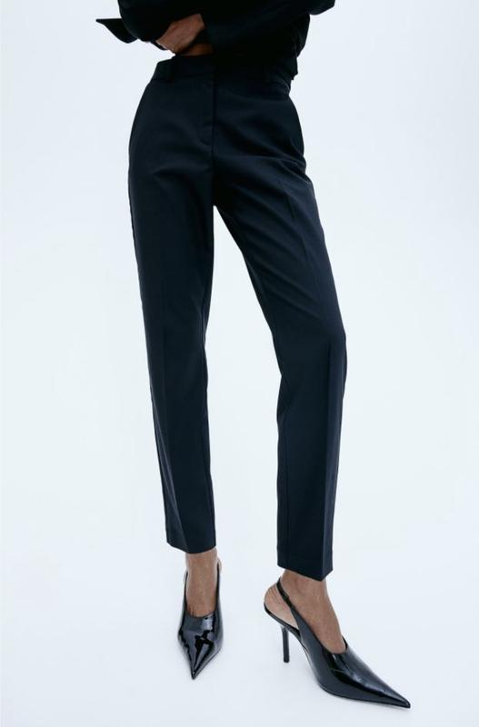 🌿базовые черные брюки H&M высокой посадки с боковыми карманами, талия на резинке с внутренней стороны, ткань 51% коттон, 46% полиэстр, 3 эластан Размер 36 Замеры ПОТ 35 см, ПОБ 45 см, длина 94 см Размер:38 Замеры:ПОТ 37 см, ПОБ 47 см, длина 95 см