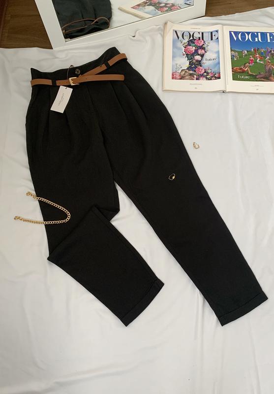 Нові брюки з поясом Розмір 36, S Півобхват талії 34 см Посадка 31 см, висока Півобхват бедер 52,5 см Довжина 100 см Матеріал: ліоцел