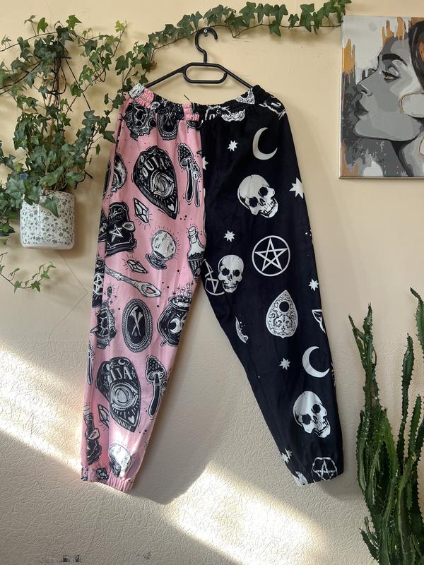 Мʼякий матеріал, якісний принт, виглядають дуже круто. Широкі, подібні на «алладіни», мають резинки внизу та стягуються шнурком зверху. Розмір S-M-L за рахунок їх обʼєму.