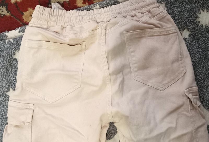 штаны карго, плотный материал, следует нагладить, без дефектов, куча карманов, в целом выглядит стильно.