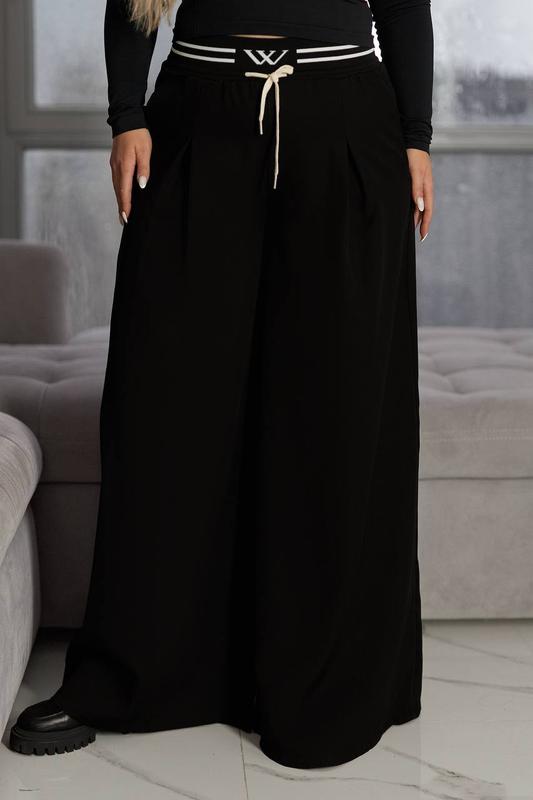 Широкие брюки палаццо с высокой посадкой и декоративным 376 ♥️тканина креп костюмка 🌈цвет черный, шоколад, серый ▪️размер 50-52,54-56,58-60 💰Цена 815 грн 🔥 замеры⬇️⬇️⬇️ ▪️50-52 р Объем талии 64/100 объем бедер 140 длина брюк 104 ▪️54-56 р От 72/108 Ос 150 дшт 106 ▪️58-60 р От 80/116 об 160 дшт 108