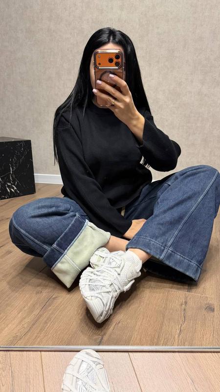 Модель 0088 Теплые джинсы палаццо на мягком флисе ❄️ 42-46;48-52;54-58; ▫️Фото — наш реал 📸 Идеальны для прохладной погоды: • Внутри теплый и приятный флис • Комфортная посадка и свободный крой - не стесняют движений • Можно носить с подворотами для стильного образа Создают тепло и комфорт каждый день 🤍✨ Замеры по изделию 42-46 ОБ 116 ширина брюк 29 Длина 110 48-52 ОБ 122 ширина брюк 31 Длина 110 54-58 ОБ 130 ширина брюк 34 Длина 111