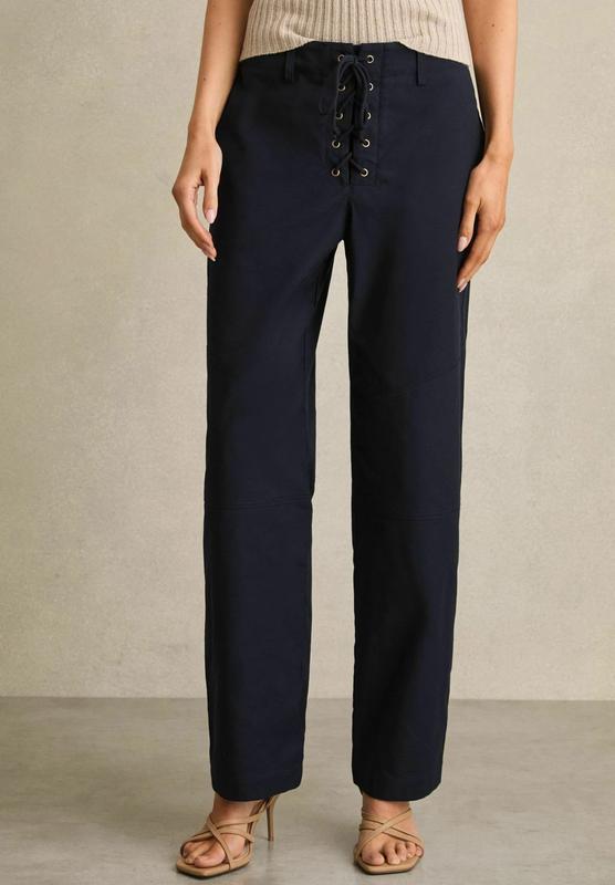 Брюки Reiss темно синього кольору, оздоблені шнурівкою 📍Розмір -36 📍Пот -36 📍Посадка-27 📍Довжина-99 📍Кроковий -74 📍Пос -55