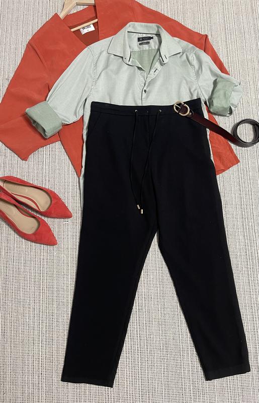 Брюки вільного крою. Пояс на гумці. Прямого крою Довжина 100 см Шаг 71 см Пот 44 см тягнеться Поб 64 см Ширина по низу 18 см
