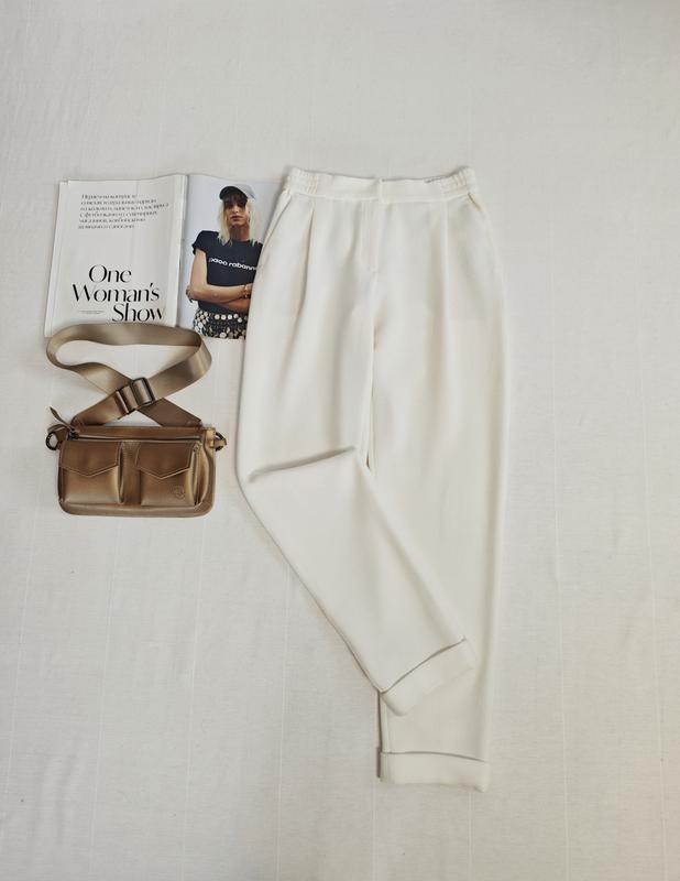 🌿молочные фактурные брюки Massimo Dutti в стиле casual с боковыми карманами, талия сзади на резинке Размер:34 Замеры:ПОТ 33 см, ПОБ 49 см, длина 94 см