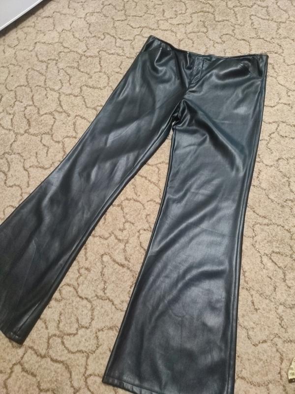 Красивые кожаные брюки, очень качественный кожзам, тянутся, к низу клеш, талия немного занижена.