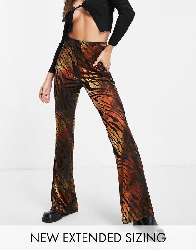 Штани від фірми Asos, нові але без бумажняної бірки. Тканина леопард з сіткою, трохи просвічують, якщо вони в натяжку. Пояс йде на резинці. Заміри: Ширина поясу - 29 см Передня посадка- 30 см Задня посадка- 34 см Довжина від поясу - 101 см