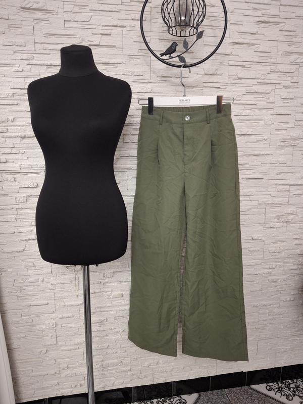 Хорошие брюки в трендовом цвете оливки. Первое фото лучше всего передает цвет. Свободная и удобная модель. По уду есть резинка. Новые. На размер S-M. Ширина в талии 34 плюс растяжка Ширина в бедрах 51см Длина 103см