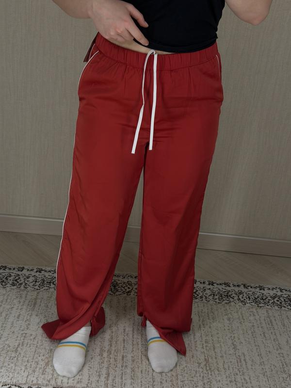 Обхват т 40 Обхват 50 Довжина 105 Склад , поліестер Розмір М Підійдуть на високій зріст , на талії є шнурки