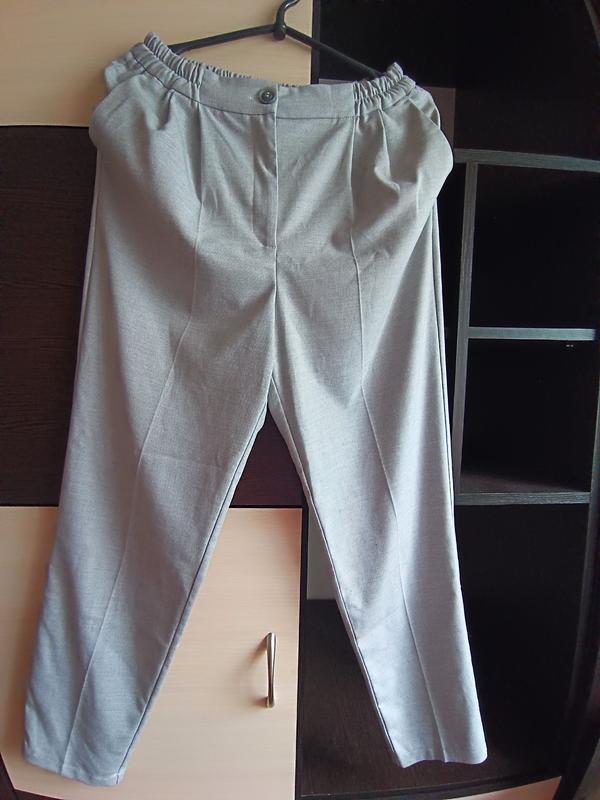 очень красивые брюки сток, серого цвета, длина 96, п/т 35 и тянется до 48, п/ б 54.