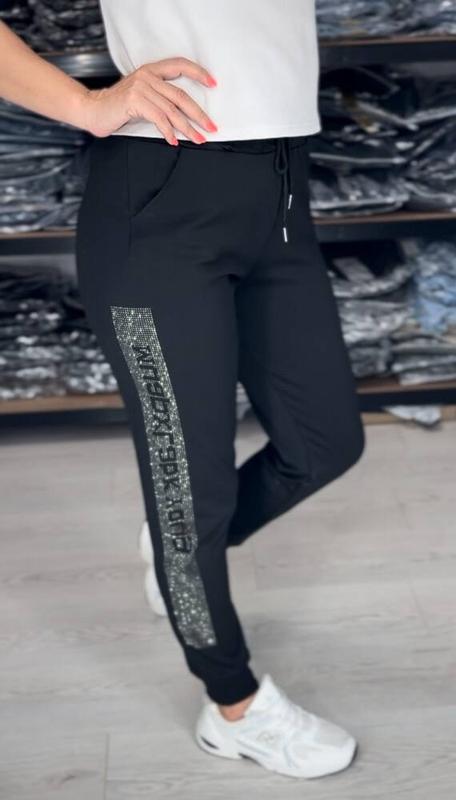 Єластичні жіночі спортивні штани на манжеті-дуже комфортна та якісна модель. Пояс на широкій резинці та шнурку,збоку страховий блискучий декор з каміння-з гарним переливом,та якістю. На штанях присутні дві кишені без блискавок,та знизу манжети. Посадка висока,тканина добре тягнеться. Матеріал дайвінг трикотаж двунитка Склад поліестер 65% бамбук 30% Єластан 5% Колір чорний ...... Заміри маломірять 2XL/3XL (48-50) Обхват талії 66/90 см Обхват стегон 102 см Крок 74 см Посадка 29 см Довжина 101 см 3XL/4XL (50-52) Обхват талії 68/95 см Обхват стегон 106 см Крок 74 см Посадка 30 см Довжина 102 см 4XL/5XL (54-54) Обхват талії 70/100 см Обхват стегон 110 см Крок 74 см Посадка 32 см Довжина 102 5XL/6XL (54/56) продані Обхват талії 72/105 см Обхват стегон 112 см Крок 74 см Посадка 31 см Довжина 102 см *Ціна 650 грн🐻