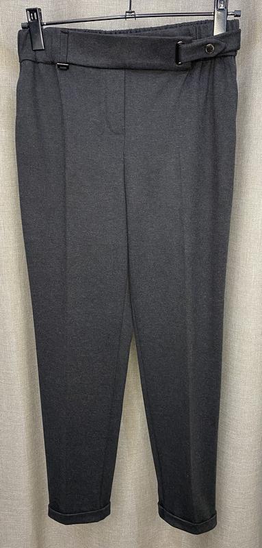 Темно-серые женские брюки. По низу зауженные, пояс на резинке. Производитель: Украина Розми: 40 За дополнительной информацией воспользуйтесь)