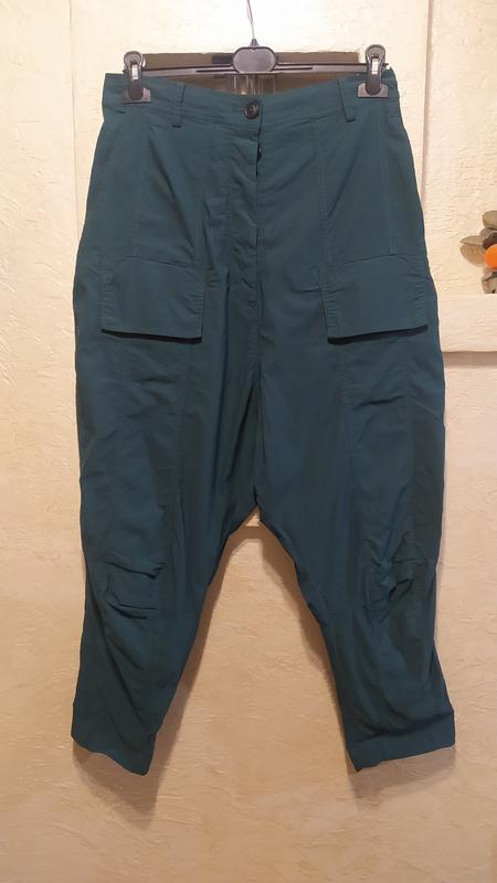 состояние идеальное цвет насыщенный зелёный бутылочный тянется хорошо пояс 39 резинка бедра 57 длина 98 посадка перед 50 низ штанины 17 размер указан с но реально на л и м