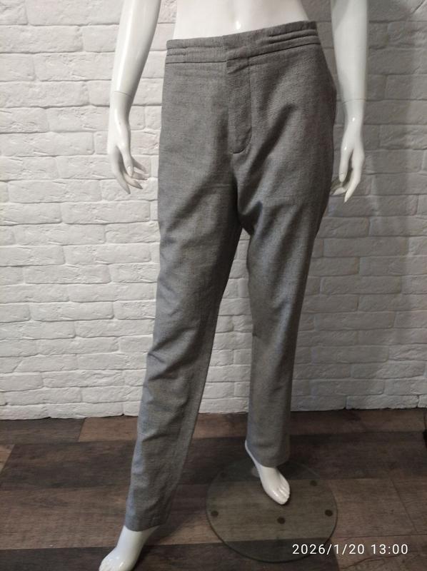 Есть шнурки для стянутости с внутренней стороны, принт "гусиная лапка". Замеры: талия 42 см бедра 56 см длина штанины по внешнему шву 109 см длина штанины по внутреннему шву 83 см ширина в районе бедра 30 см ширина в районе колена 21 см ширина по низу 18 см высота посадки спереди 29 см