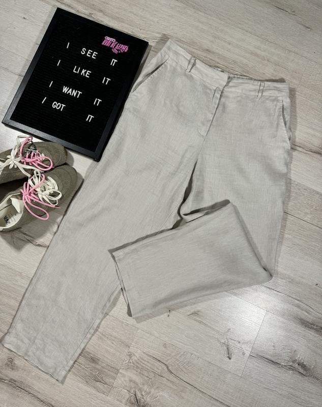 размер: указан 42рр, полуобхват пояса - 43 полуобхват бедер - 54 длина по внешнему шву - 100 по внутреннему - 69 посадка - 34/48 ширина штанки сверху 36, снизу 20 Льон S