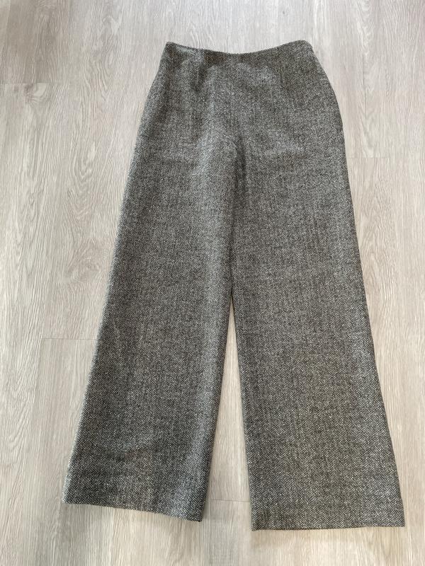 Теплі шерстяні штани класичного фасону . Дуже гарно сідають по фігурі. Мають прямий крій. Довжина- 99 ПОТ - 34 ПОБ - 51 Посадка - 30 (перед) 35 (зад) ПОштанини - 29
