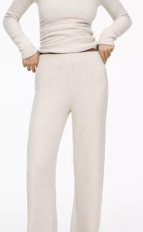 Широкі брюки М розмір з м'якого трикотажу. Ношу розмір С але взяла М щоб сиділи вільно (фото на тілі в описі). Нажаль не носила костюм і кофта пошкодилась при транспортуванні (її в комплекті немає). Брюки не носились, проте без бірки, тому вказую що річ не нова.