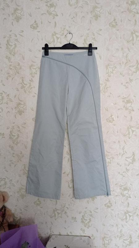 Ширина в поясе 35 см, полу ОБ 48 см, длина по внешнему шву 104,5 см, длина по внутреннему шву 79 см, глубина 25/34 см, ширина штанины низ 27 см, цвет ментоловый