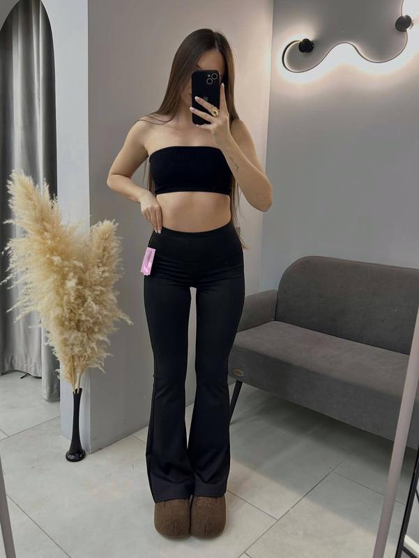 Размер 42-44, 44-46 ▪️Ткань - микродайвинг ▪️Цвет - черный Классные обтягивающие брюки, которые круто подчеркнут твои формы 😍 красиво облегают талию, снизу широкие. Супер - трендова модель 💔