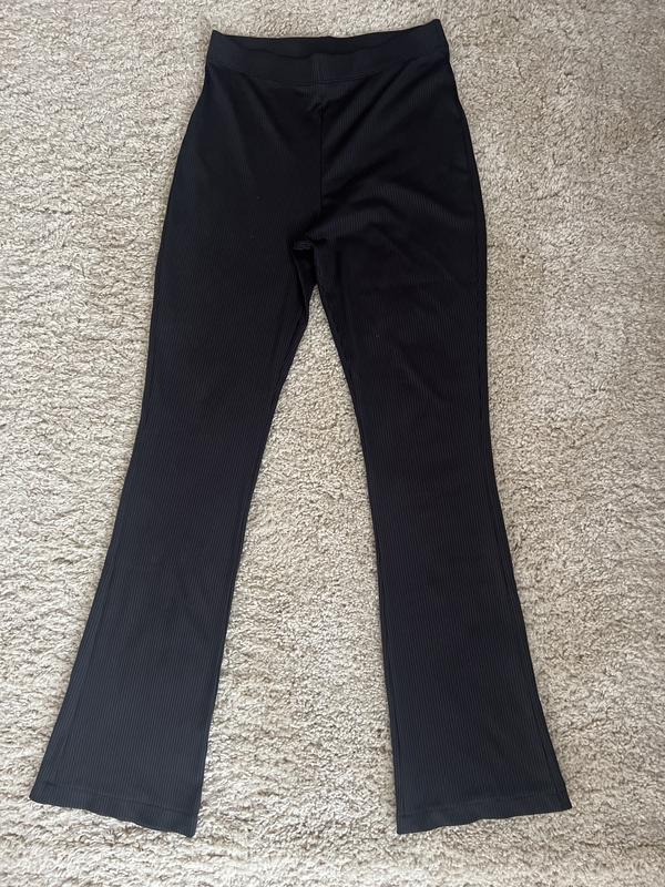 Чорні штани в рубчик H&M, внизу ширші, сідають по фігурі, розмір S