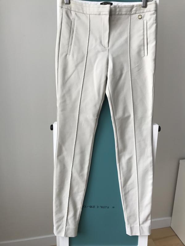 Вузькі штани на середній посадці. Ідеально під чоботи. Бренд Massimo Dutti, дуже якісні. Стан близький до ідеалу, є лише незначне пожовтіння на поясі як слід від вішака, в носці непомітно, враховано в ціні. Розмір вказано 38. Склад бавовна та поліамід, детальніше є на фото. Заміри Довжина 95 Посадка 23 Талія 35 Стегна 48 Низ штанини 11
